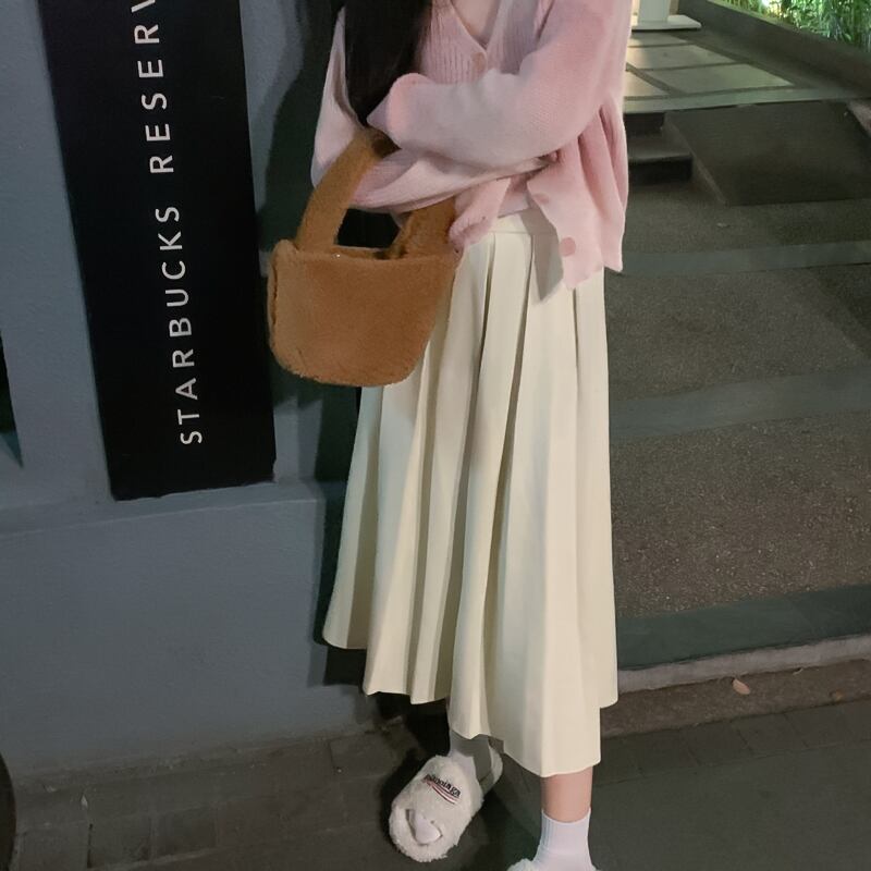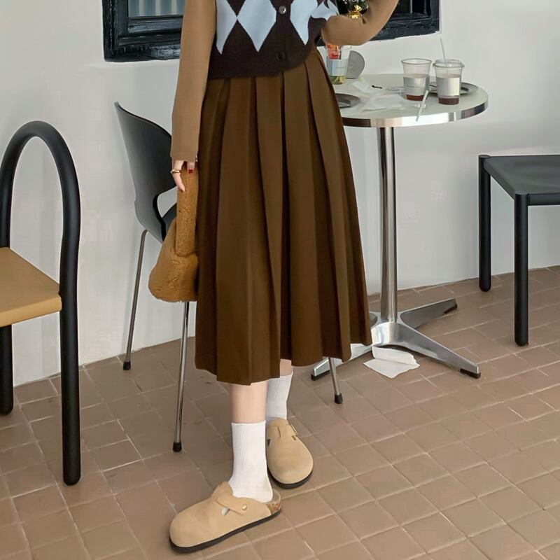 スカート オータムウィンターハイウェスト薄手プリーツ 秋物 冬物 10/5 秋冬 オータム ウインター ナチュラル mi4619418045483