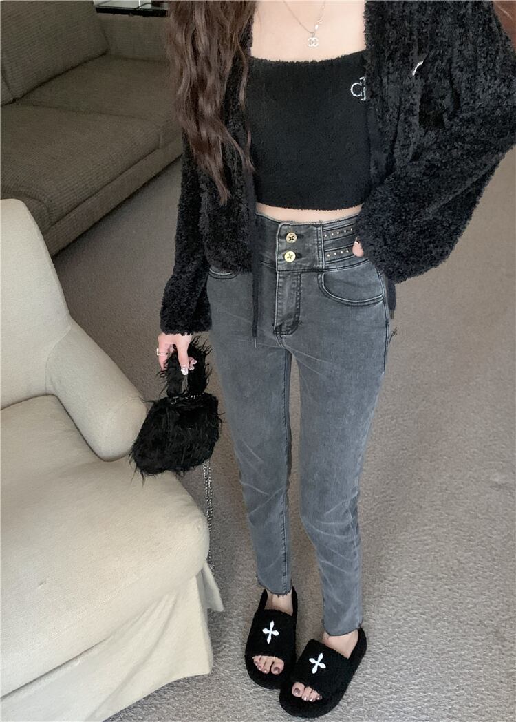 ハイウェストウェストストレッチスリムジーンズ オータムカジュアルパンツ エラスティック 伸縮 秋物 10/5 秋冬 オータム ウインター ナチュラル mi4675059495128