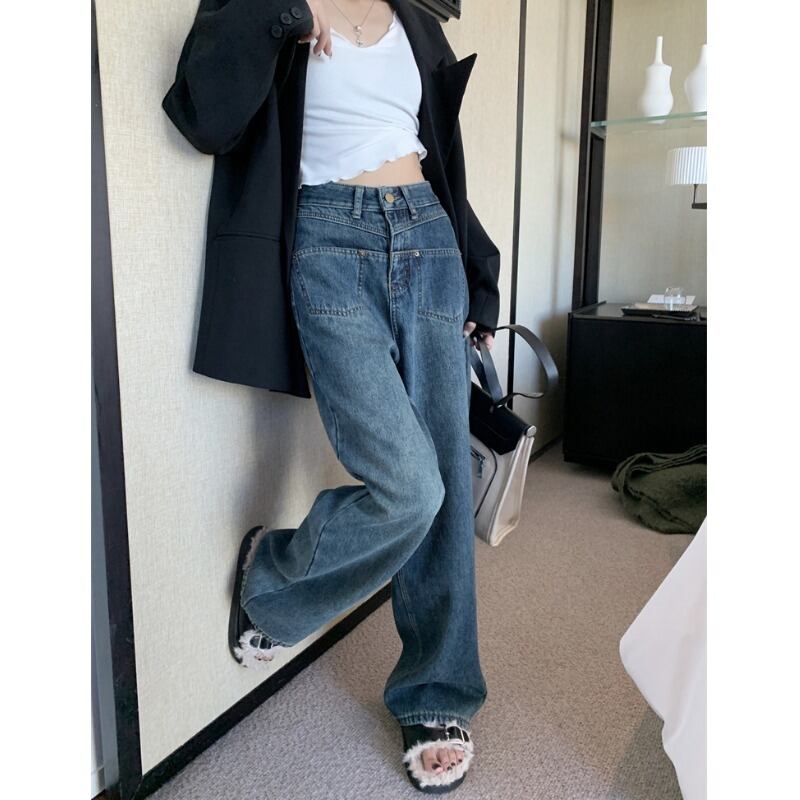 スタンダードスタイルハイウェストウェストジーンズ オータムウィンタールーズワイドレッグパンツ レトロ 秋物 冬物 ワイドパンツ 10/5 秋冬 オータム ウインター ナチュラル mi4624382086715