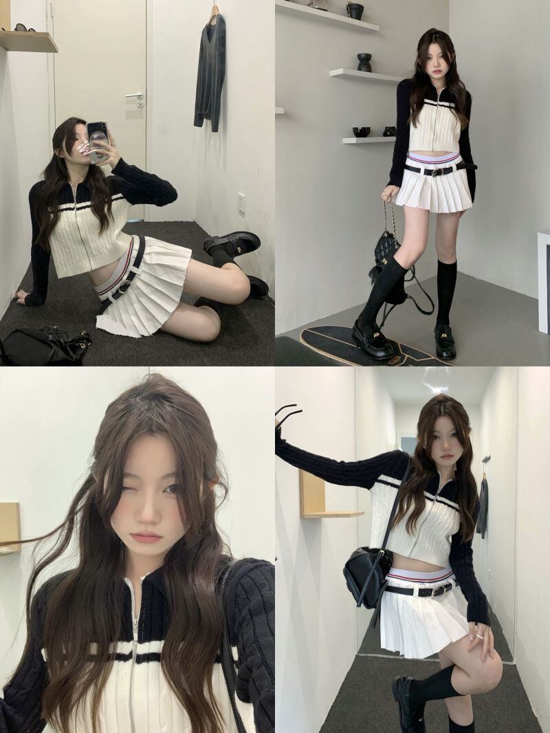 カラージッパーニットセーター ジャケット オータムルーズショートカーディガントップス ロング 秋物 10/5 秋冬 オータム ウインター ナチュラル mi4671818753242