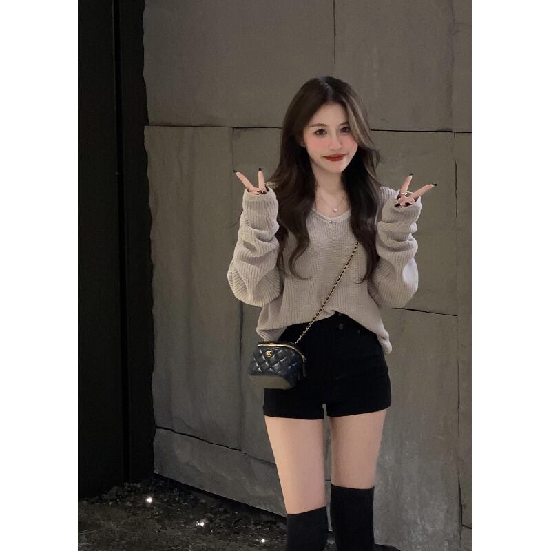 色:ワンピースアプリコットセーター,ブラックショーツワンピース