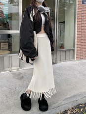 スタイルハイウェストウェスト薄手ニットスカート オータムカジュアルソリッド カラーミディ 秋物 ソリッドカラー 10/5 秋冬 オータム ウインター ナチュラル mi4688815946229