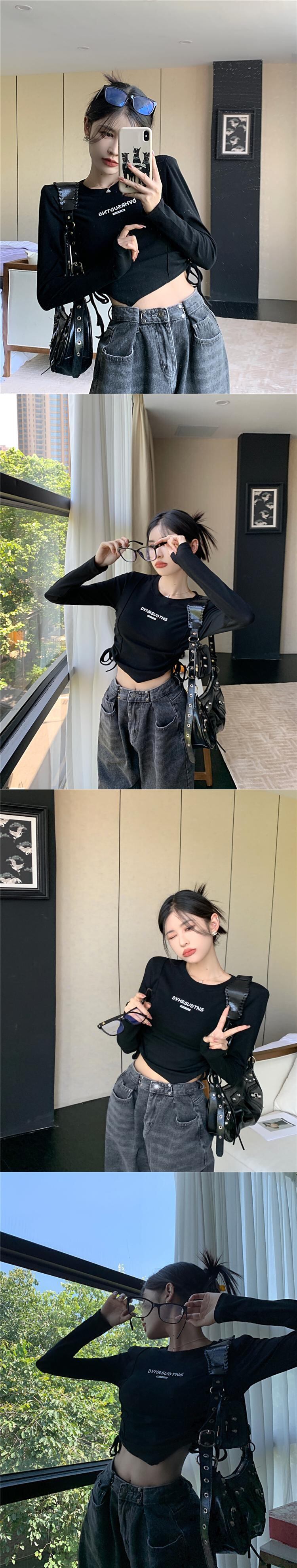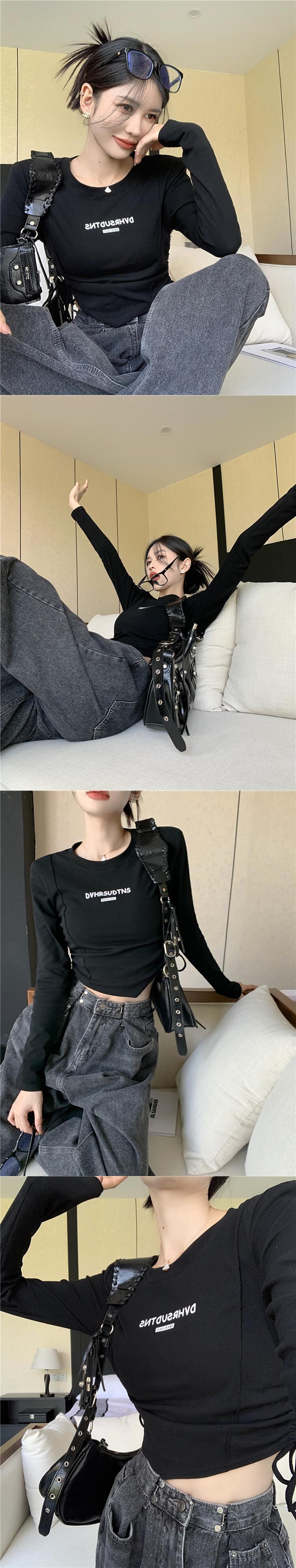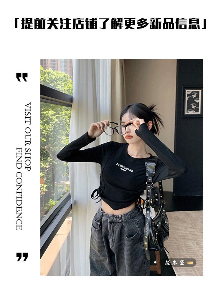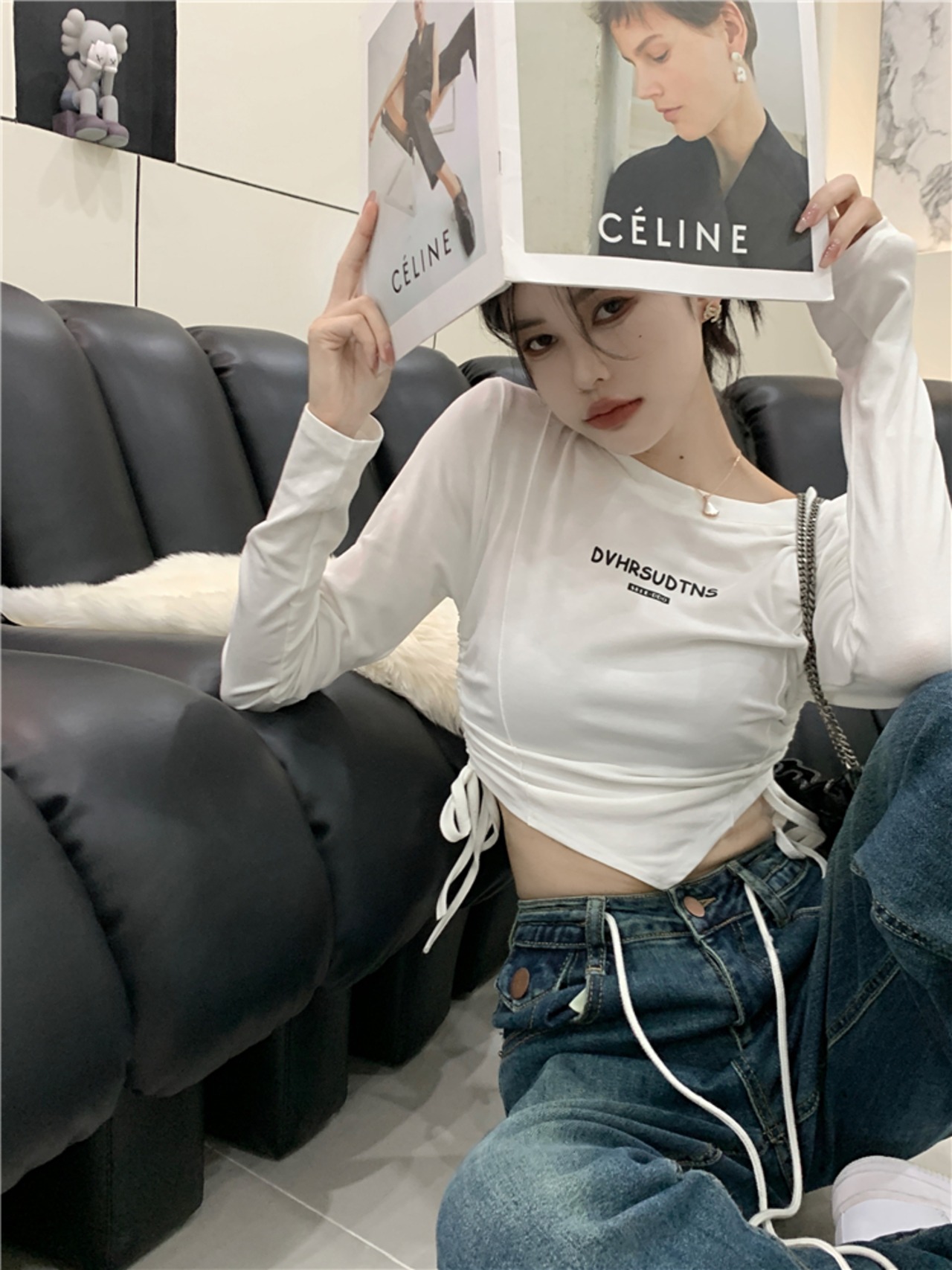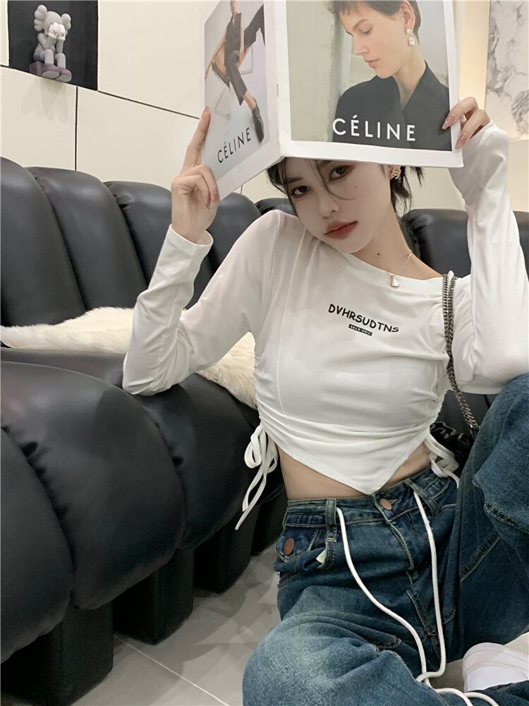 プリント柄ギャザーTシャツ オータムスリムショートトップス ロング 秋物 ピュア 10/5 秋冬 オータム ウインター ナチュラル mi4659401811729