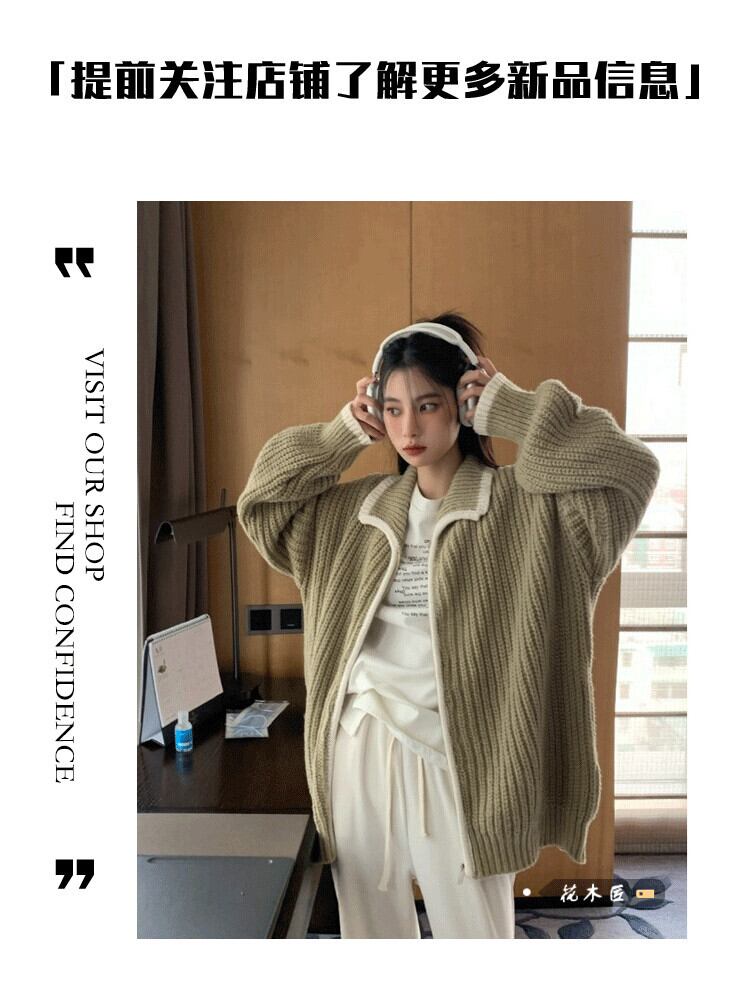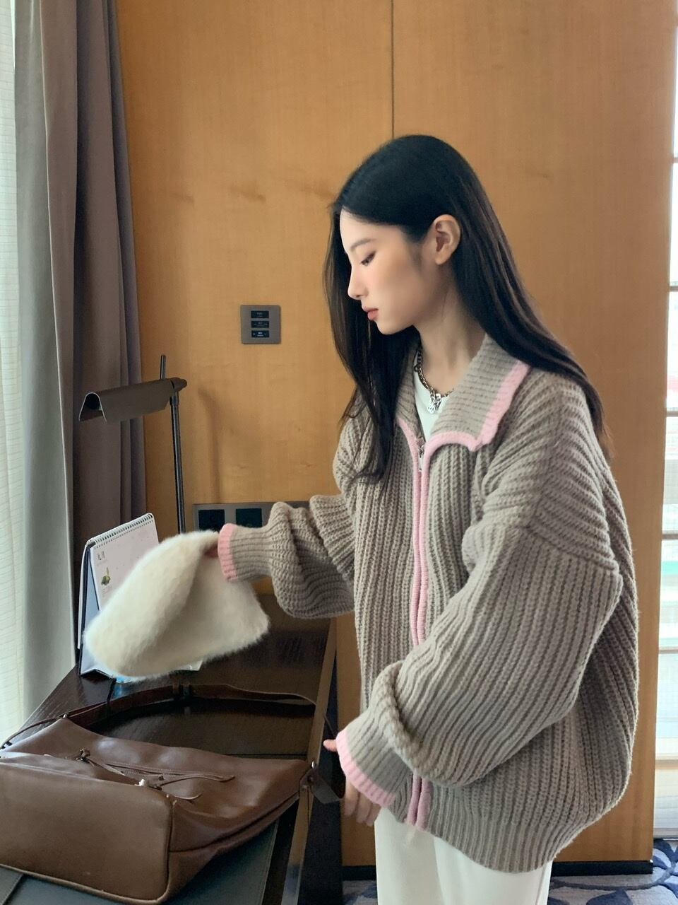 ジッパーセーター ジャケット オータムルーズカラーニットカーディガントップス 秋物 10/5 秋冬 オータム ウインター ナチュラル mi4667064572240