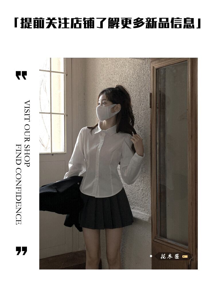 スカート オータムスリーブ長袖トップス ホワイトシャツ ハイウェストウェストプリーツセット ロング 秋物 10/5 秋冬 オータム ウインター ナチュラル mi4641203686570