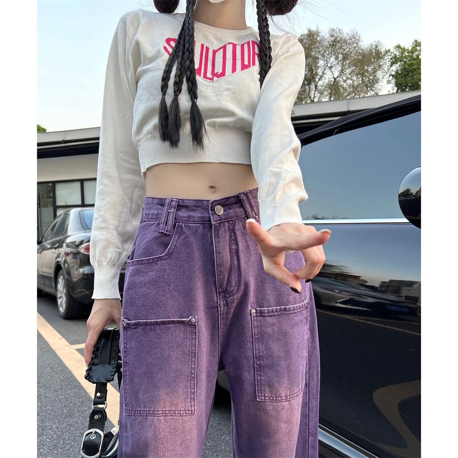 ジーンズ オータムハイウェストウェストパンツ ストリート 秋物 パープル 10/5 秋冬 オータム ウインター ナチュラル mi4661884016480