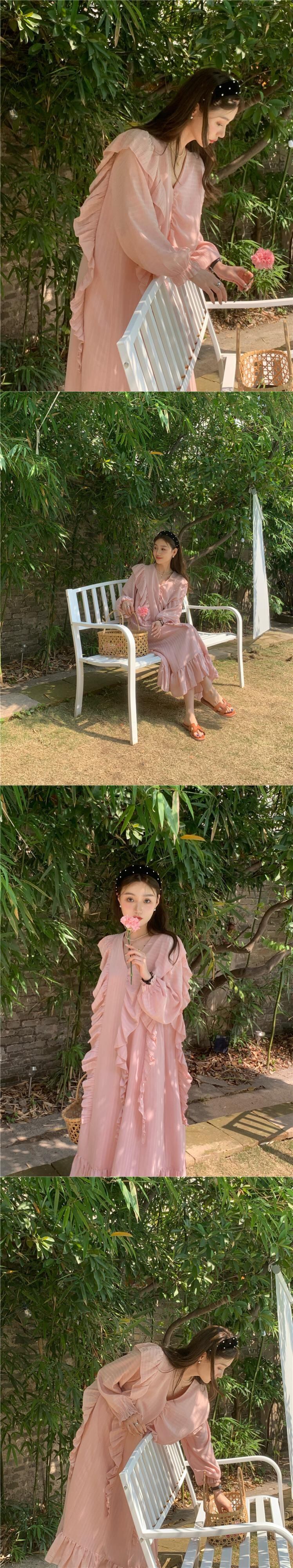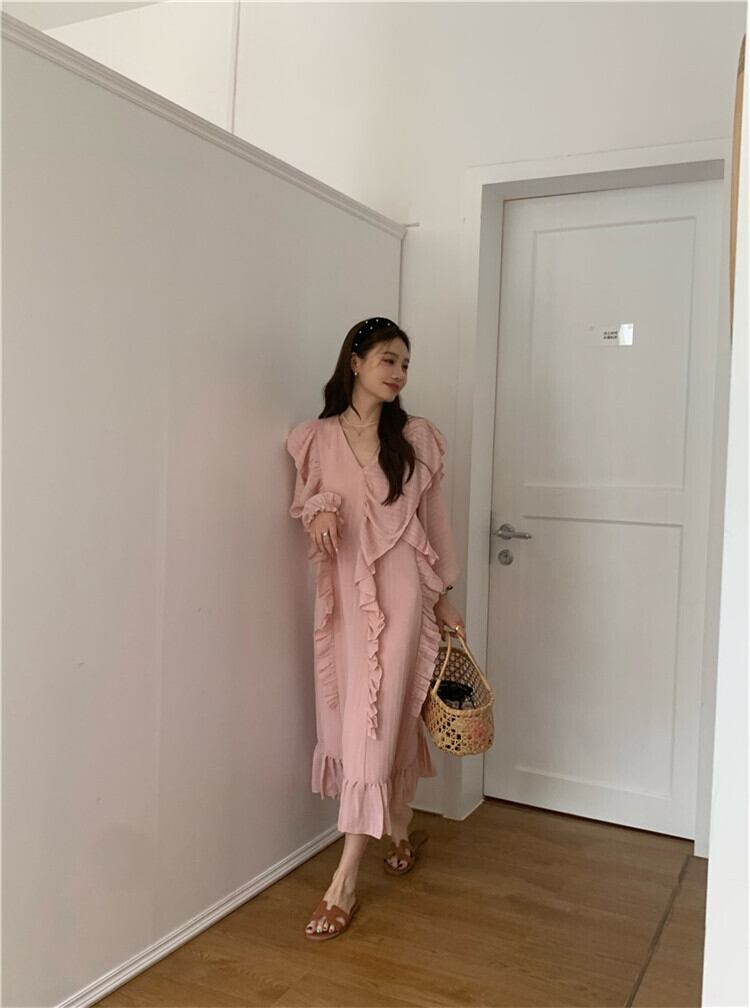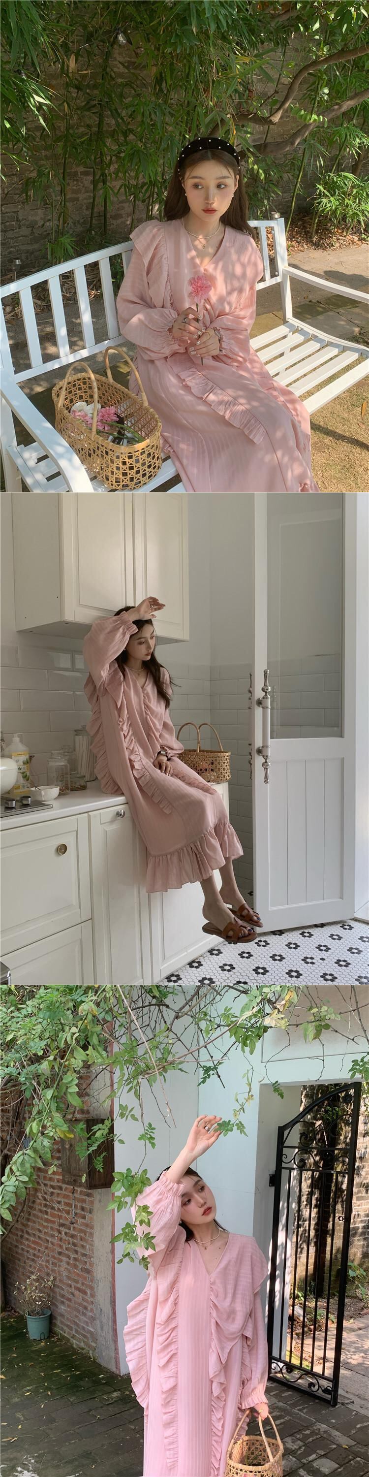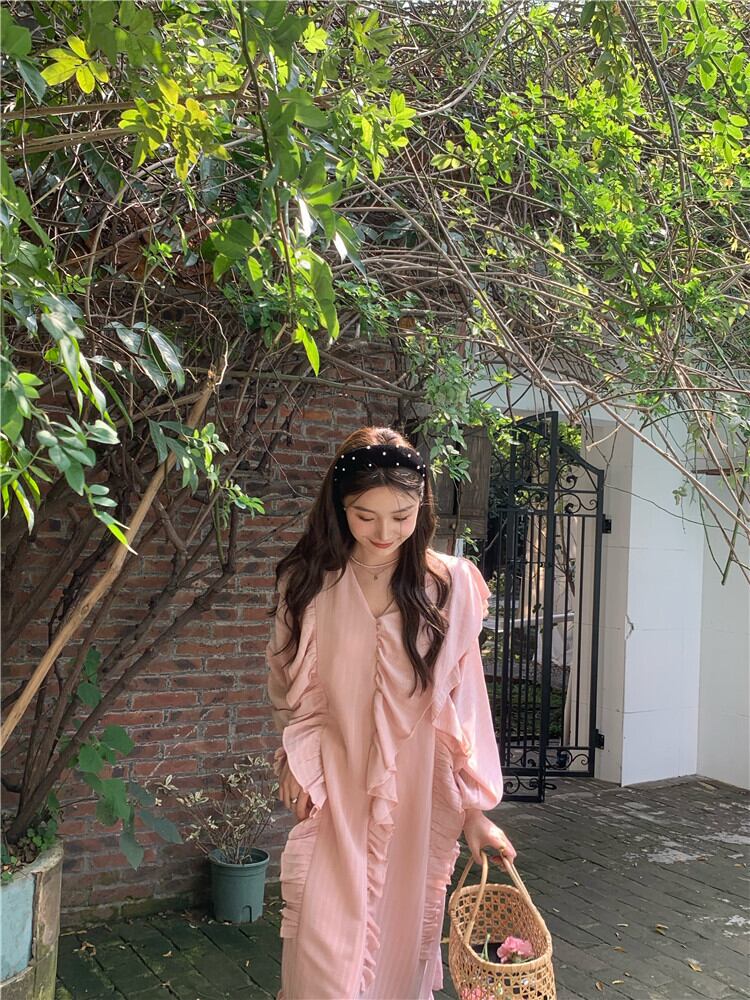 スタイルVネックドレス オータムルーズAラインスカート ピンク 大人ガーリー スウィート キュート カジュアル 秋物 10/5 秋冬 オータム ウインター ナチュラル mi4614797384162
