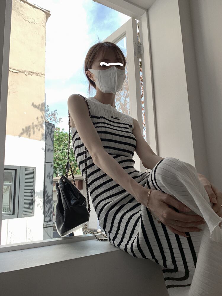 ストライプニットドレス オータムスリム 秋物 10/5 秋冬 オータム ウインター ナチュラル mi4686252116093