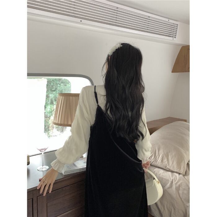 色:プラスフリースボトミングシャツ,サスペンダーベルベットスカート