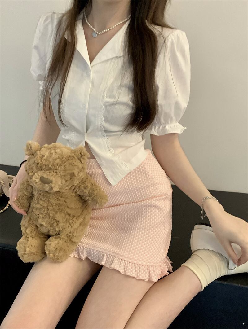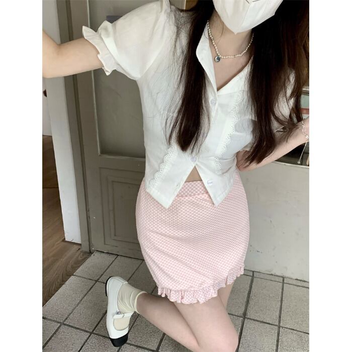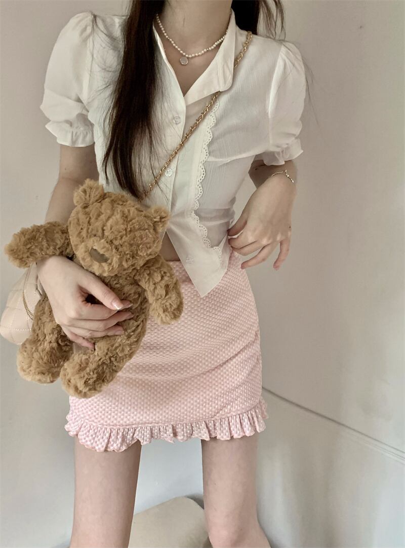 カラーレースシャツ サマースリーブトップス 大人ガーリー スウィート キュート カジュアル 夏物 10/5 秋冬 オータム ウインター ナチュラル mi4628784712998