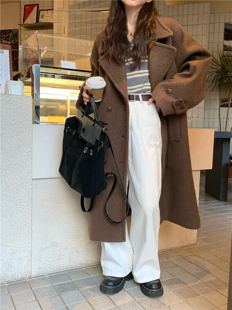 スタンダードルーズダブルブレストコート オータムウィンター レトロ 秋物 冬物 10/5 秋冬 オータム ウインター ナチュラル mi4640067574155