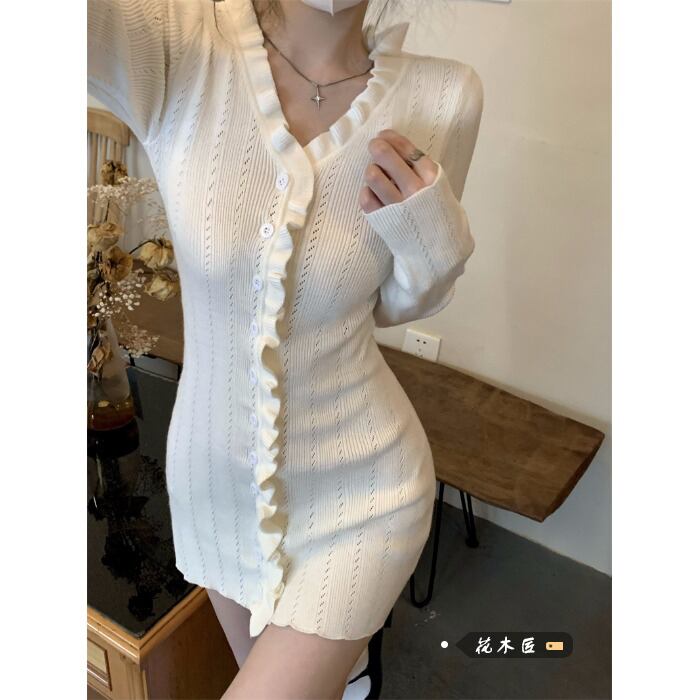 スタイルスリムVネックニットドレス オータムスカート 秋物 10/5 秋冬 オータム ウインター ナチュラル mi4694711887583