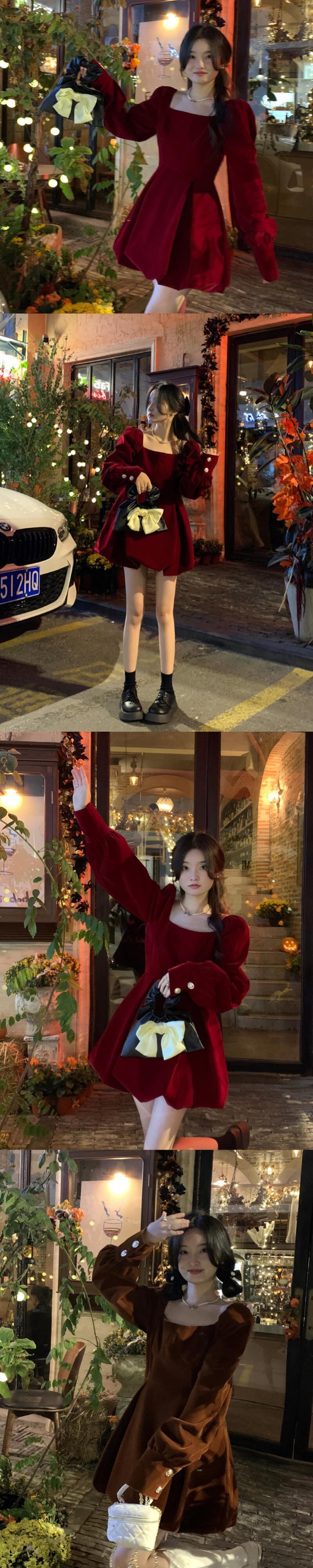 ゴールドベルベットカラードレス オータムスリムAラインスカート ロング 秋物 スクウェア 10/5 秋冬 オータム ウインター ナチュラル mi4618405375670