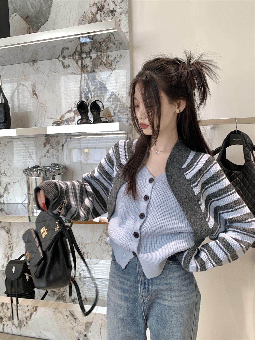 ストライプニットカーディガンオータムトップス ロング 秋物 ステッチ 10/5 秋冬 オータム ウインター ナチュラル mi461918276169