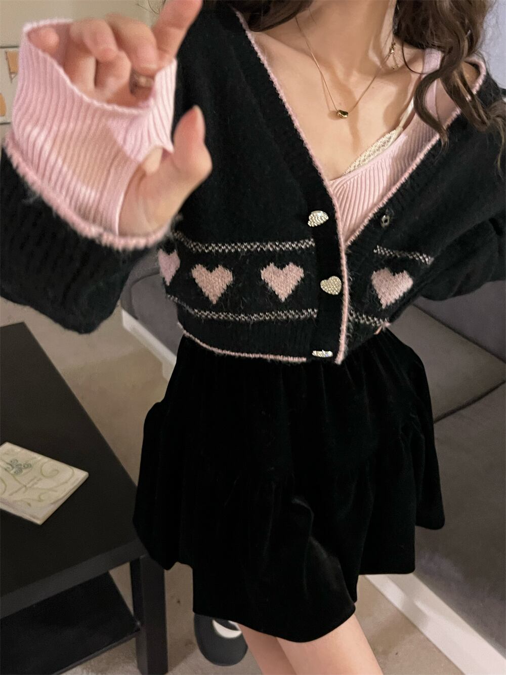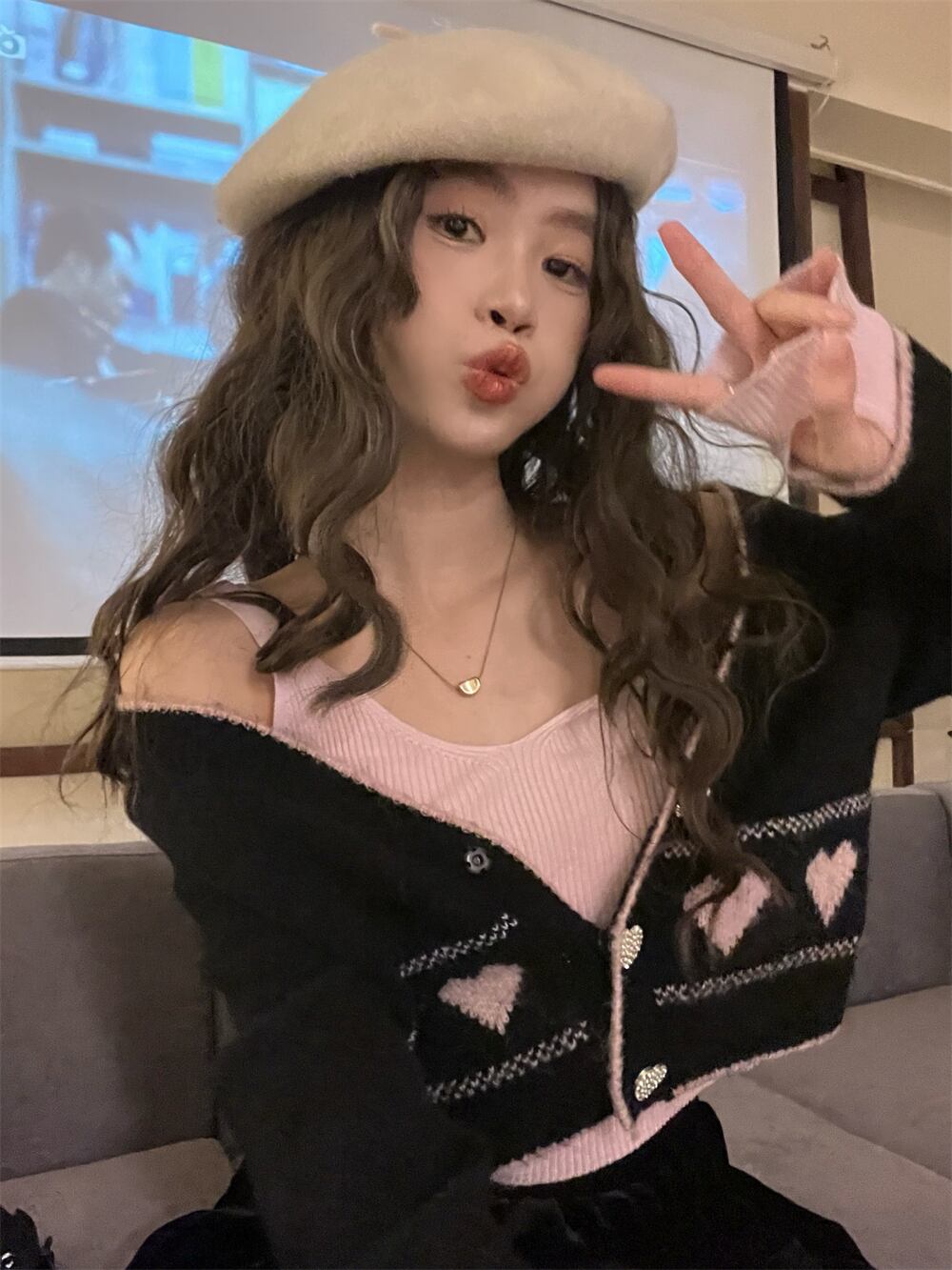 セーター カーディガンオータムルーズVネックショートニットトップス 大人ガーリー スウィート キュート カジュアル 秋物 ピュア 10/5 秋冬 オータム ウインター ナチュラル mi4687000447613