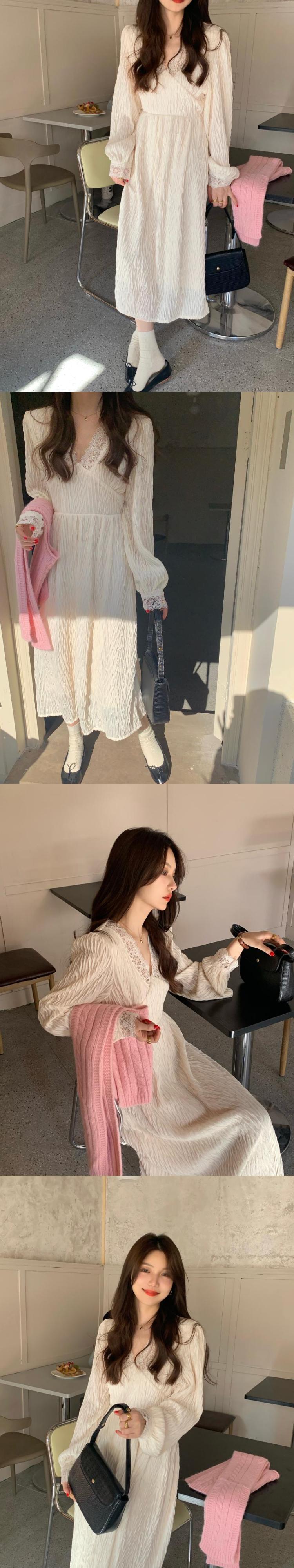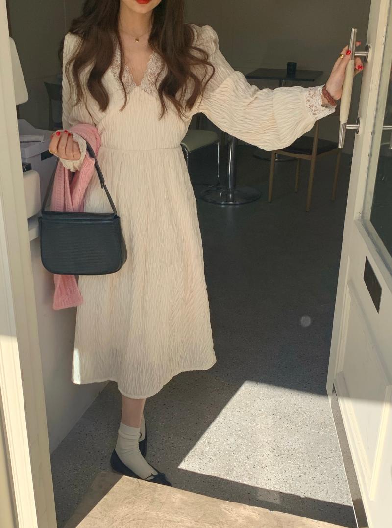 スタンダードレースベルベットドレス オータムウィンタースリムスカート ロング レトロ 秋物 冬物 ステッチ 10/5 秋冬 オータム ウインター ナチュラル mi4611014900523