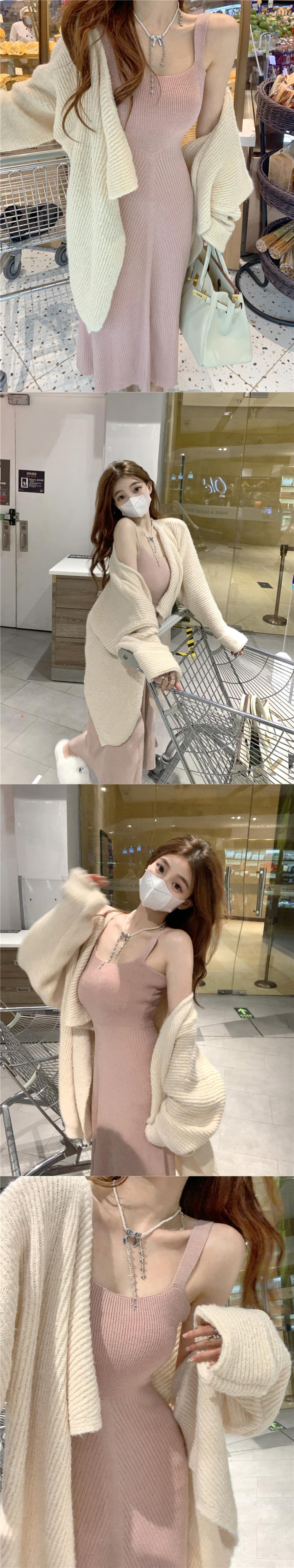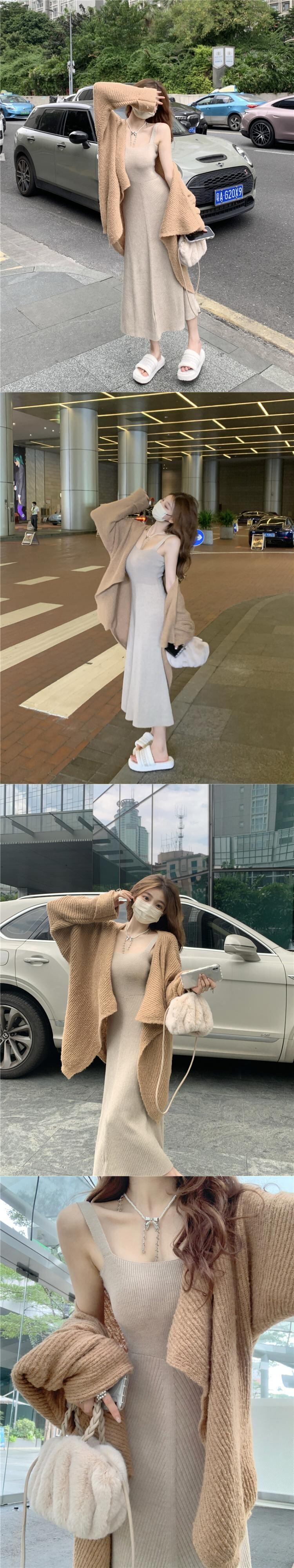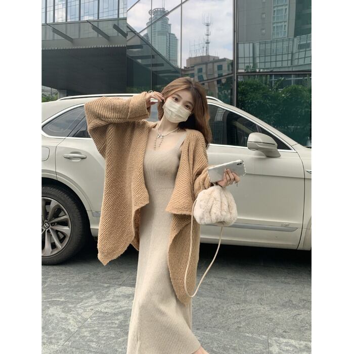 色:オレンジカーディガンワンピース,ワンピースミルクホワイトカーディガン,シャンパンピンクのベストドレス,グレーceeベストスカート