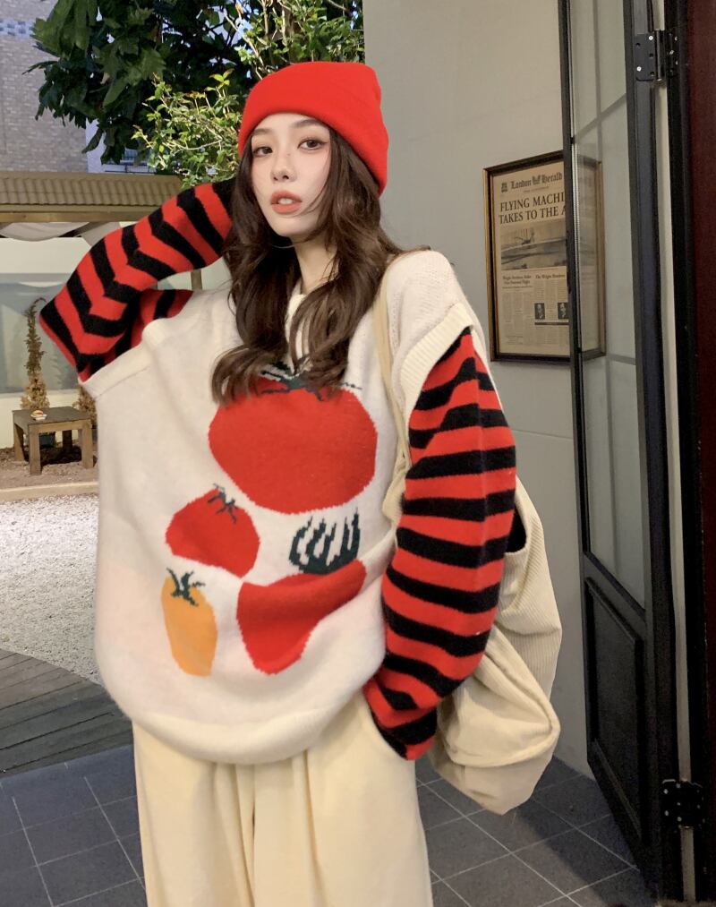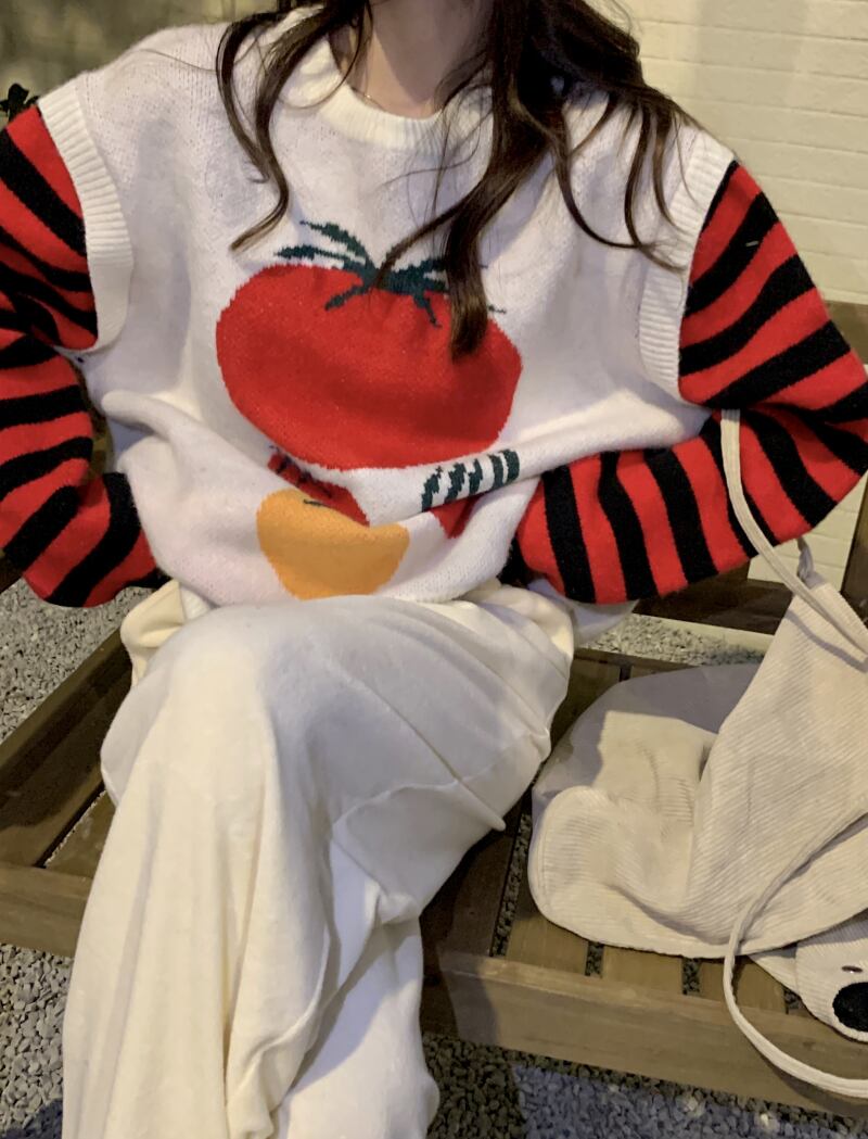 ジャカードストライプセーター オータム薄手ラウンドネックトップス 秋物 Oネック 10/5 秋冬 オータム ウインター ナチュラル mi4613033710746