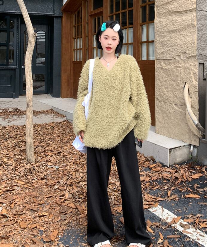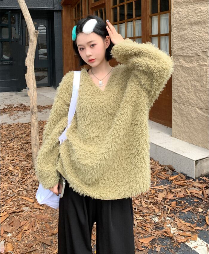 スタイルVネックルーズウールセーター オータムトップス 秋物 10/5 秋冬 オータム ウインター ナチュラル mi4647038333415