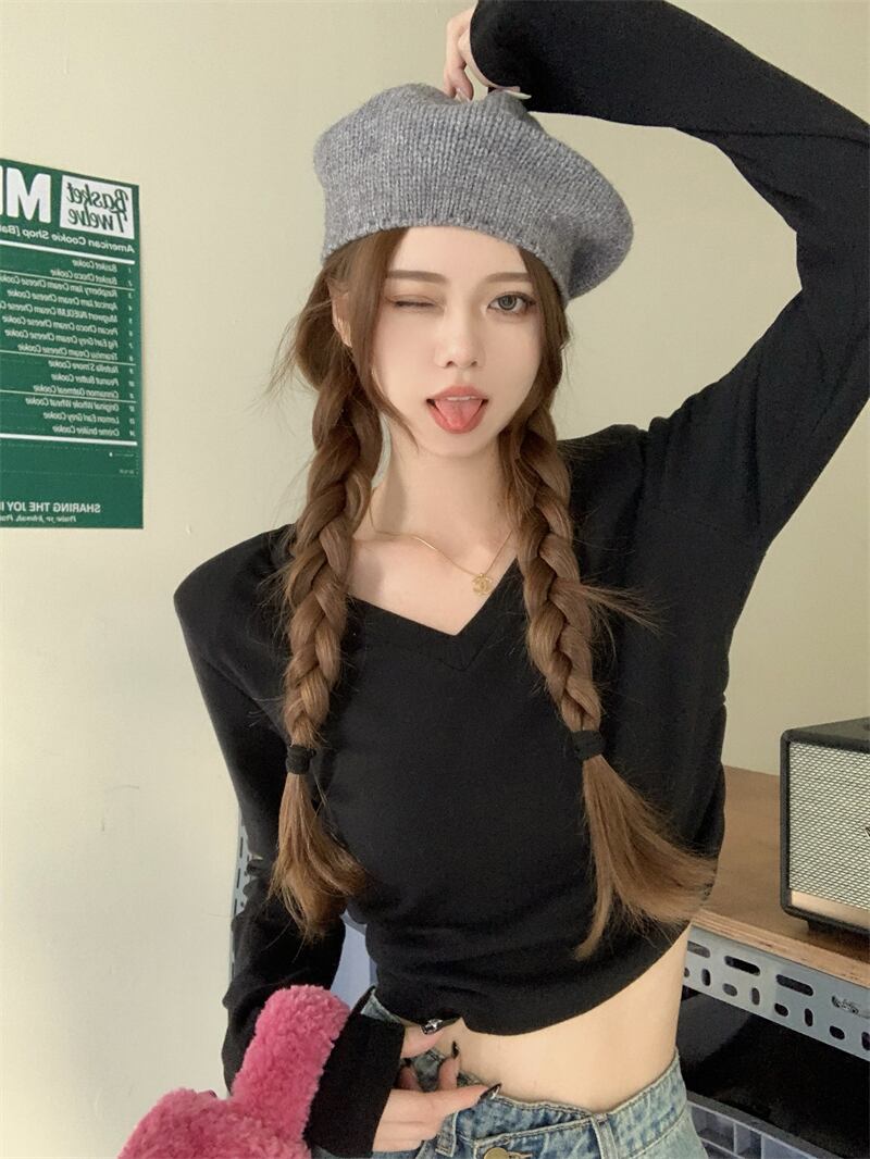 スタンダードVネック長袖スリーブTシャツ オータムスリムフィット薄手プルオーバー トップス ロング レトロ 秋物 10/5 秋冬 オータム ウインター ナチュラル mi4678508377330