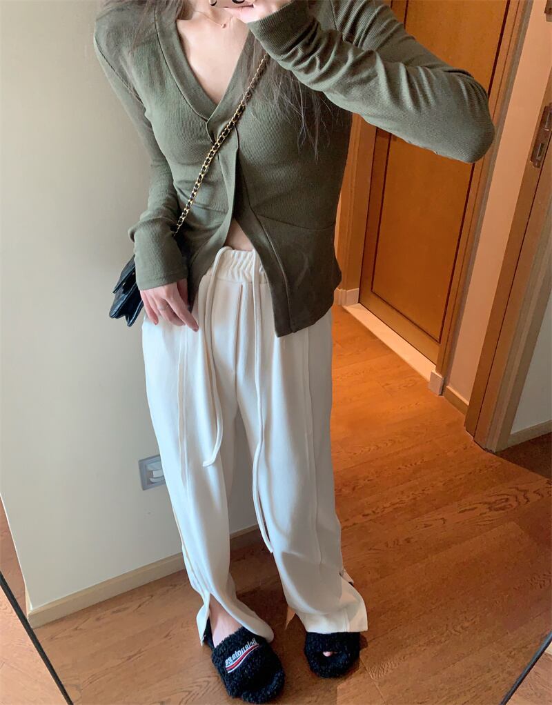VネックスリムフィットTシャツ オータムトップス ロング 秋物 10/5 秋冬 オータム ウインター ナチュラル mi4616547144673