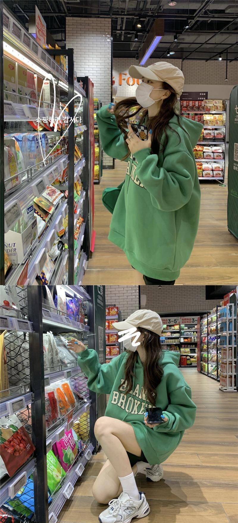 ギャザーグリーンフードセーター オータムウィンタースタイルベルベットルーズトップス 秋物 冬物 10/5 秋冬 オータム ウインター ナチュラル mi4630138125542