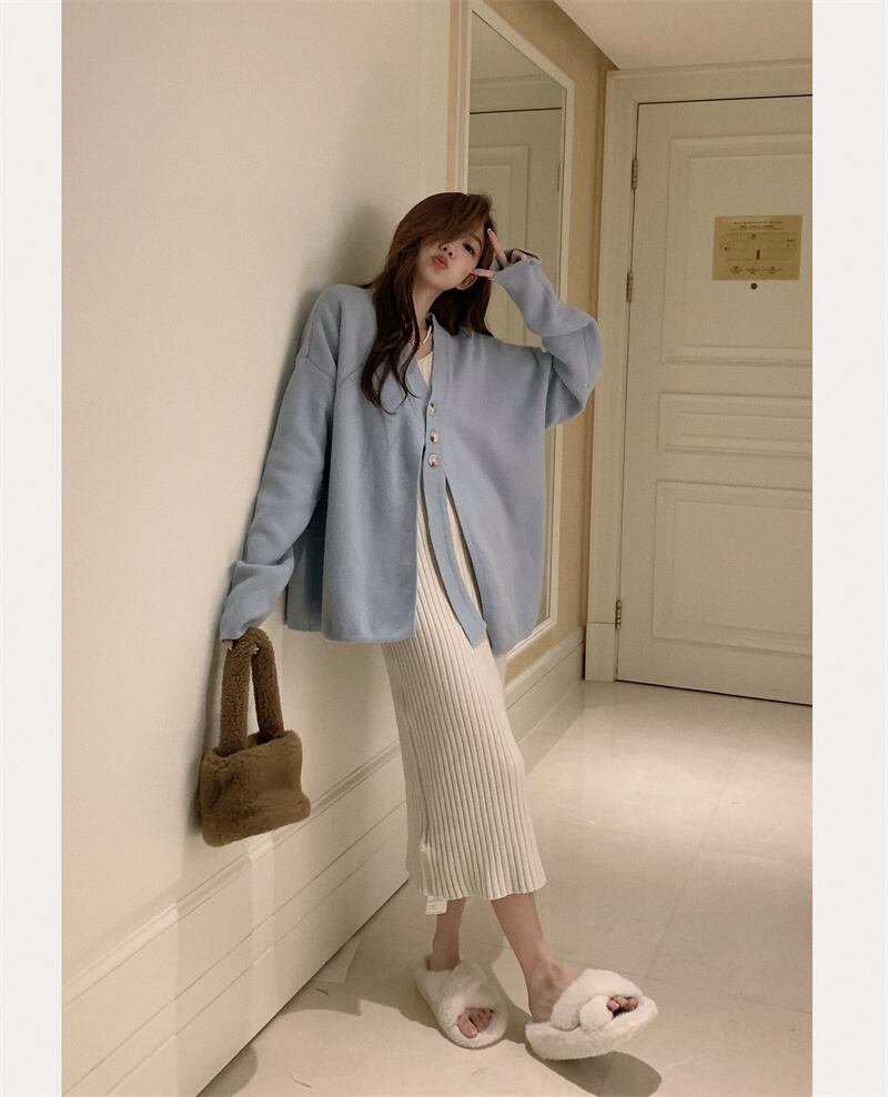 ブルールーズVネックセーター オータムニットカーディガントップス ロング 秋物 10/5 秋冬 オータム ウインター ナチュラル mi4633354944051