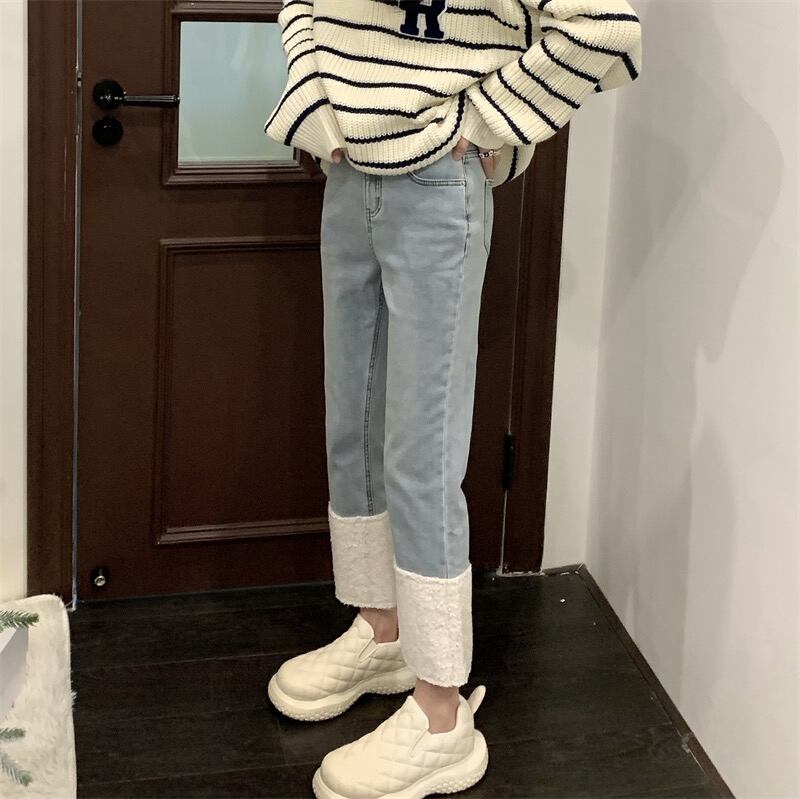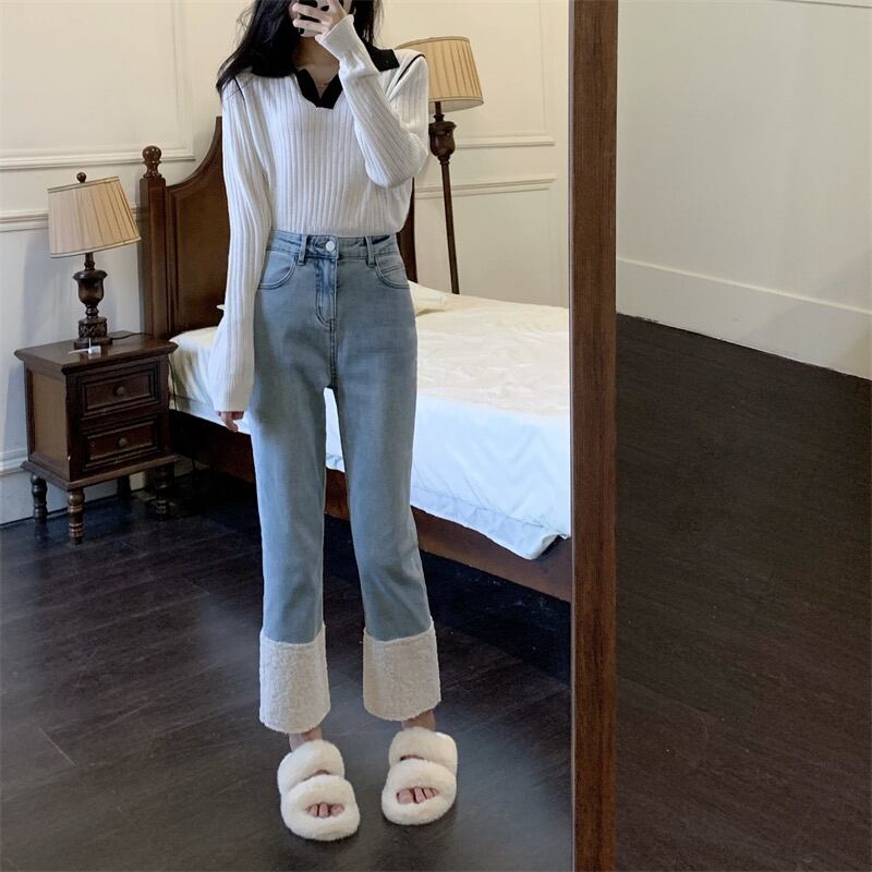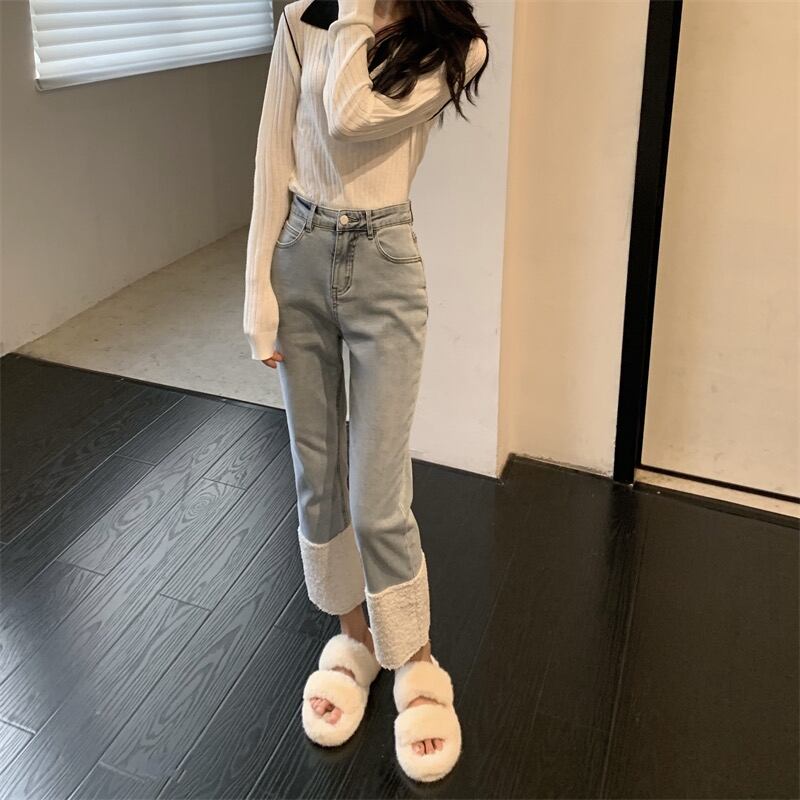 ウールジーンズ オータムハイウェストウェストスリムパンツ 秋物 ステッチ 10/5 秋冬 オータム ウインター ナチュラル mi463454867359