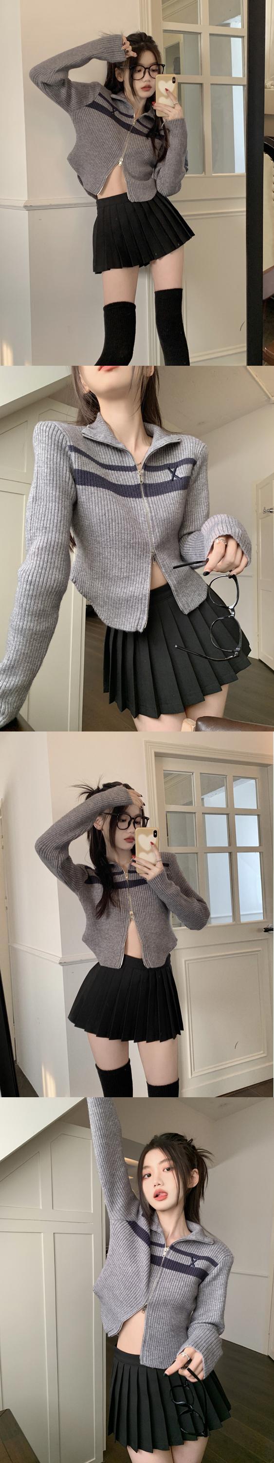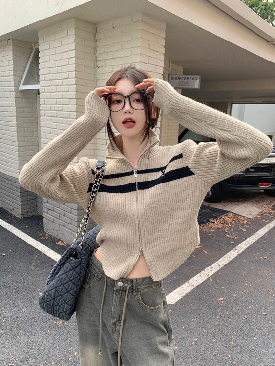 カラー刺繍ニットカーディガンオータムスタンダードスリムジッパートップス ロング レトロ 秋物 10/5 秋冬 オータム ウインター ナチュラル mi4680475675227