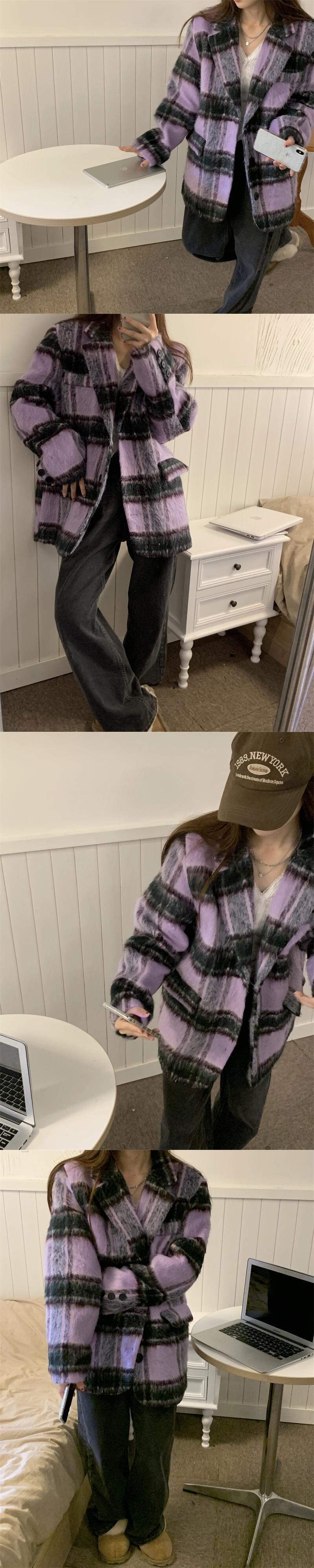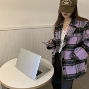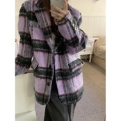 カラー格子柄コート オータムウィンタースタイルルーズジャケット コットン 秋物 冬物 10/5 秋冬 オータム ウインター ナチュラル mi4696740328381