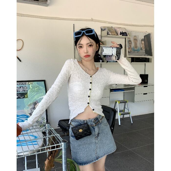 カラープリーツTシャツ オータムスリムフィット薄手Vネックカーディガントップス ロング 秋物 10/5 秋冬 オータム ウインター ナチュラル mi4650678957180