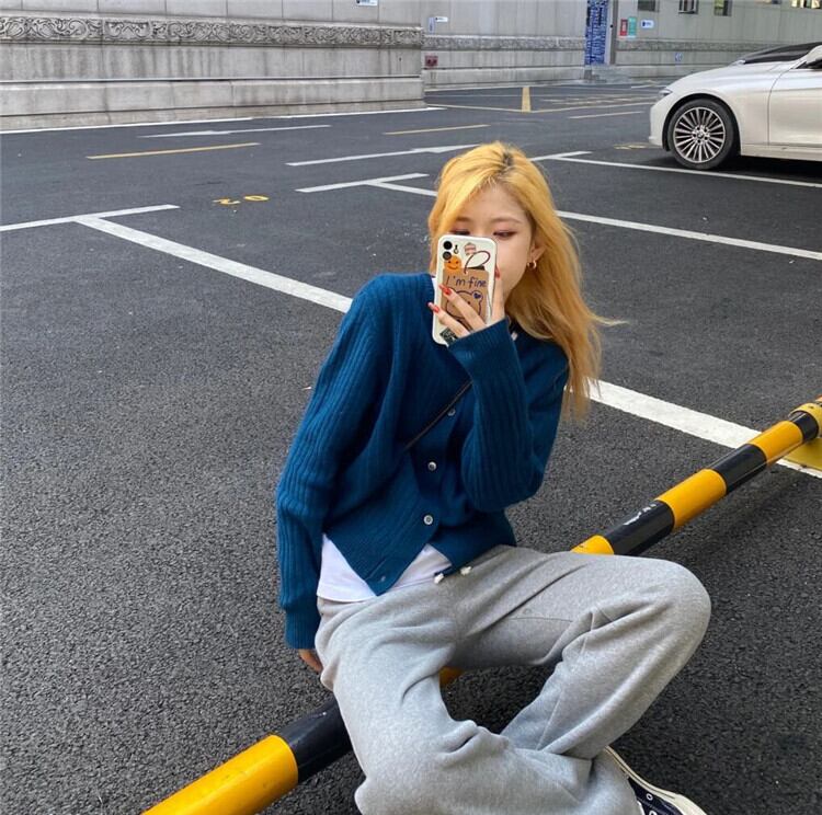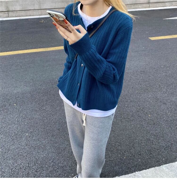 スタイルブルーラウンドネックセーター コート オータムルーズニットカーディガントップス 秋物 Oネック 10/5 秋冬 オータム ウインター ナチュラル mi4678205283690