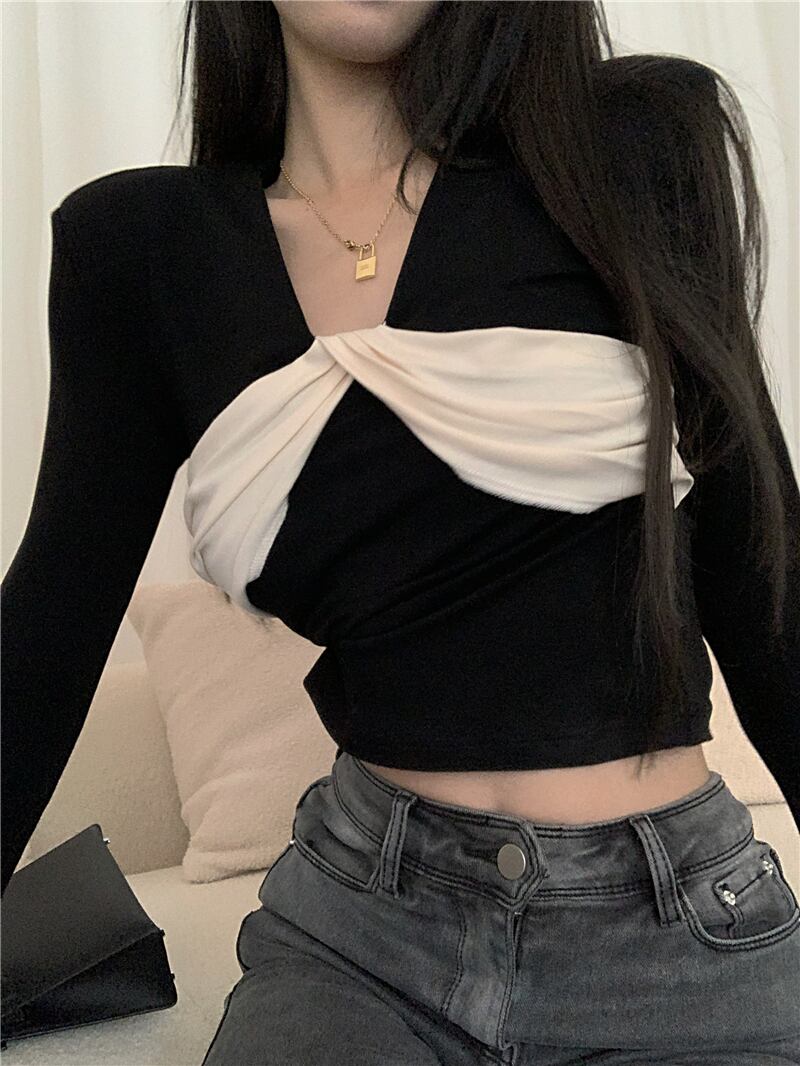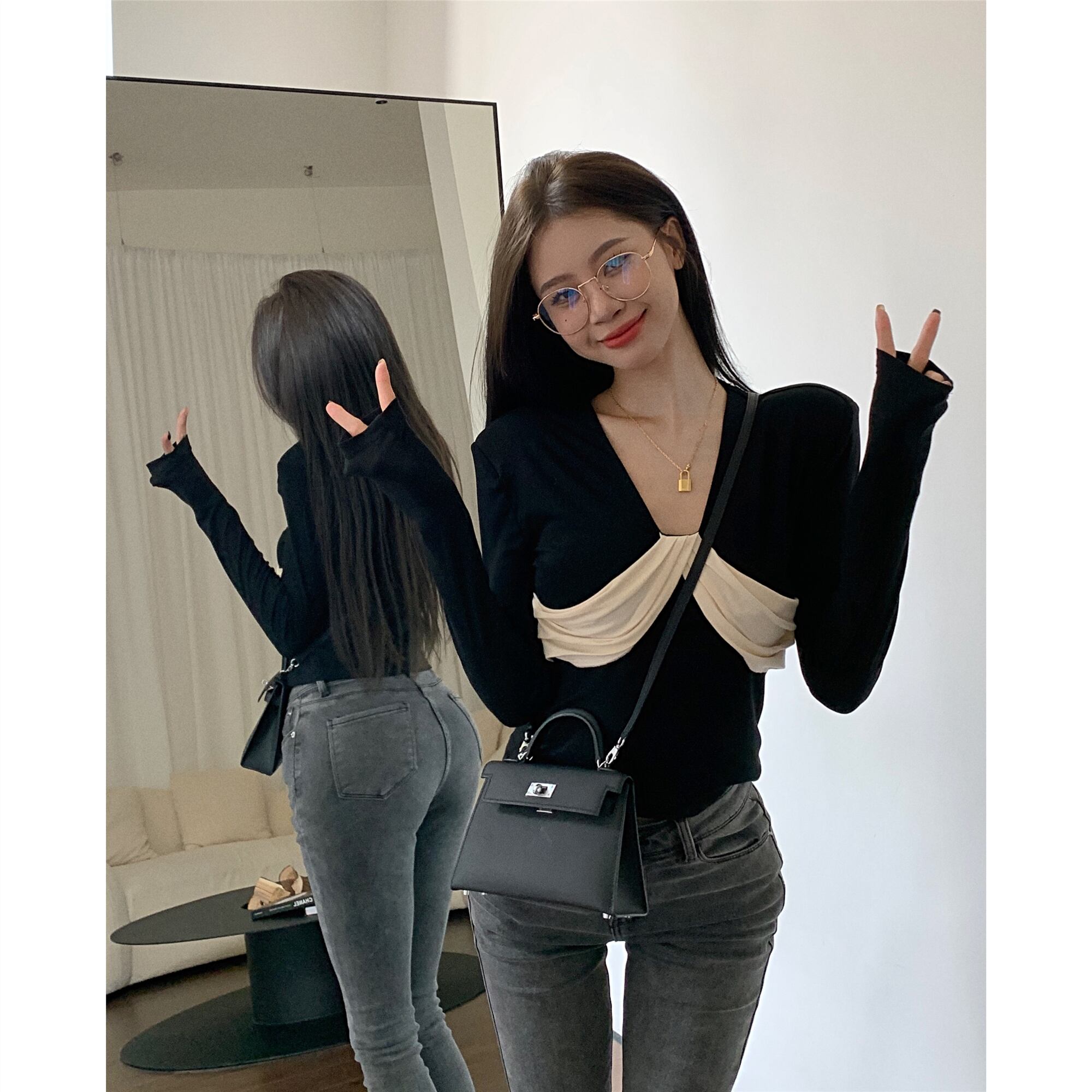 カラースリムフィットVネックTシャツ シャツ オータム ロング 秋物 ステッチ 10/5 秋冬 オータム ウインター ナチュラル mi4629308771855