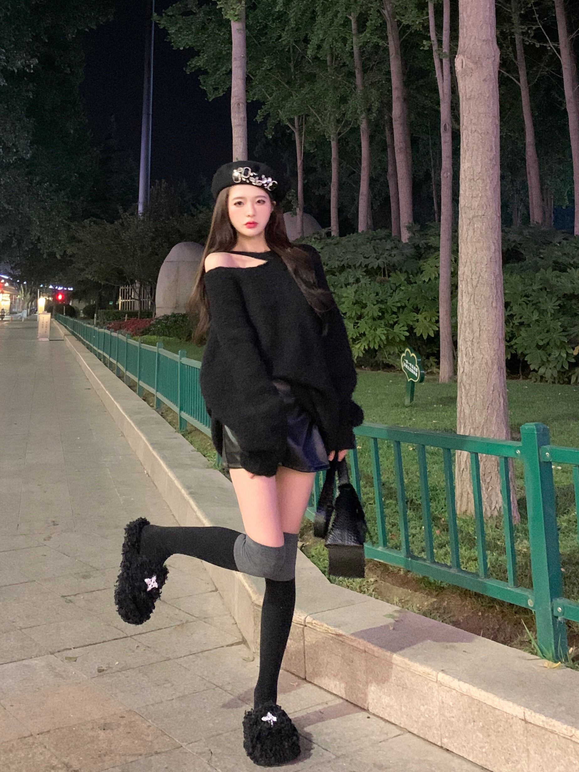 ブラックセーター オータムスタイルルーズトップス 秋物 10/5 秋冬 オータム ウインター ナチュラル mi4666293245423
