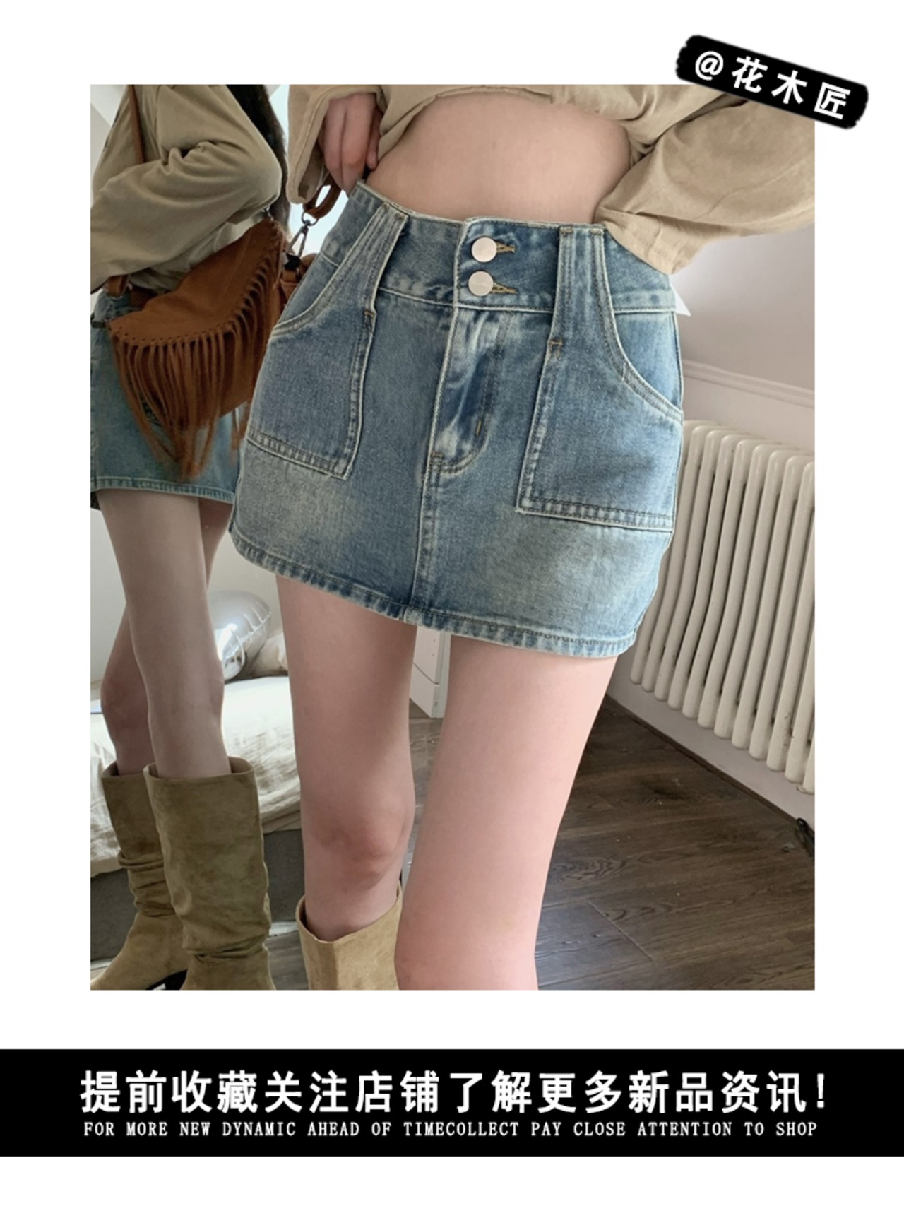 スタンダードスカート サマーダブルボタンウェスト薄手 レトロ 夏物 10/5 秋冬 オータム ウインター ナチュラル mi4651045851754