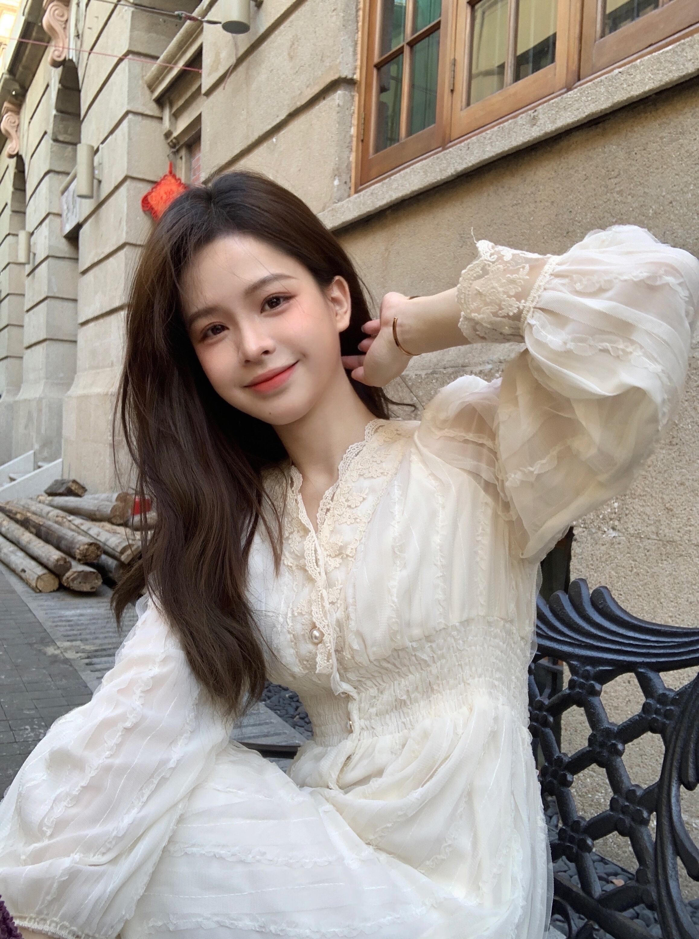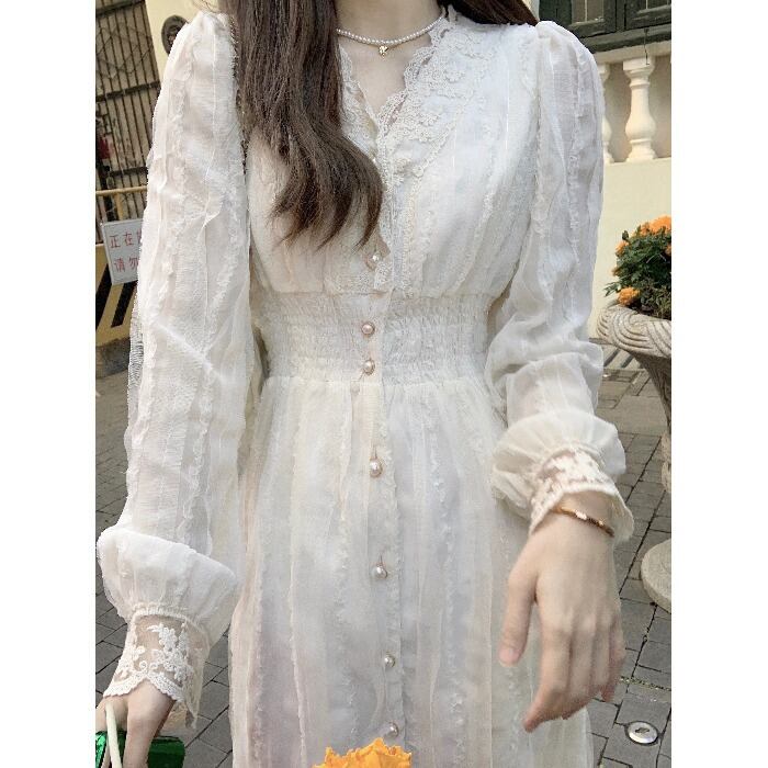 スタイルレースVネックドレス オータムウェストAラインスカート 秋物 10/5 秋冬 オータム ウインター ナチュラル mi4641102857552